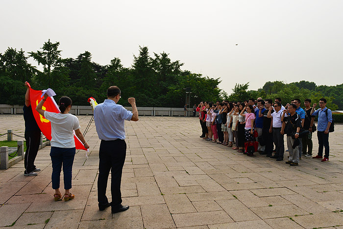 ????????第一項活動是全體黨員來到雨花臺革命烈士紀(jì)念碑,為先烈敬獻花圈,并在黨旗的見證下,莊嚴(yán)宣誓黨的誓詞。重溫黨的誓詞,讓在場的每一位黨員在內(nèi)心深處又多了一份對自己的洗禮和自省。