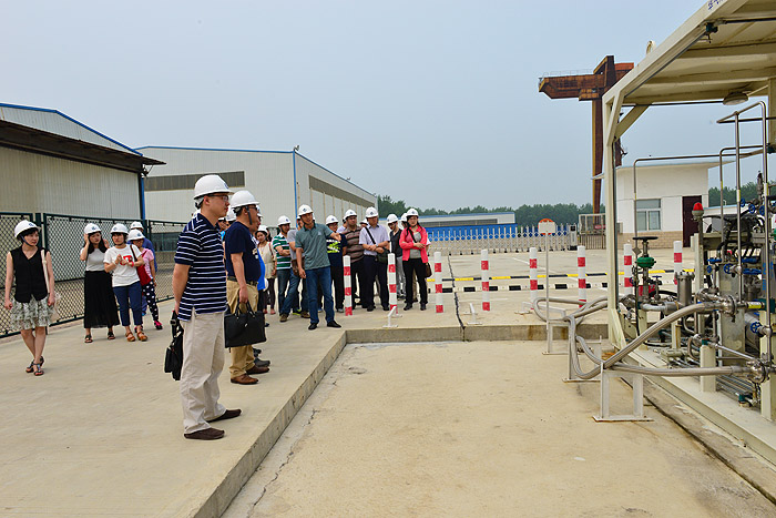 ????????第二項活動是全體黨員參觀八卦洲水上LNG加注站。值得一提的是,這是全球首座LNG水上加氣站。在加氣站同仁的帶領(lǐng)下,全體黨員也零距離地接觸了“海港星01”。