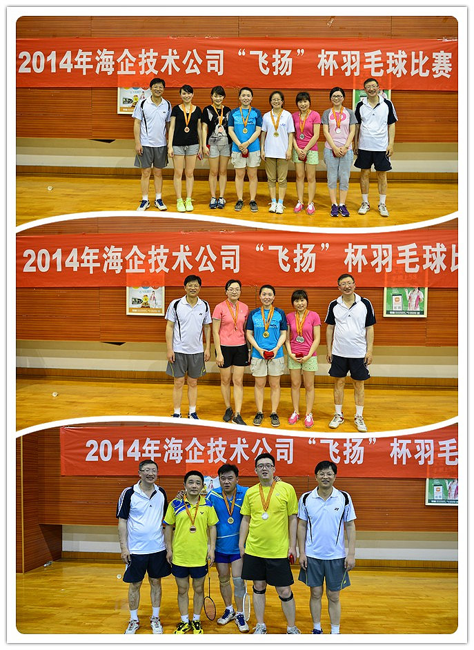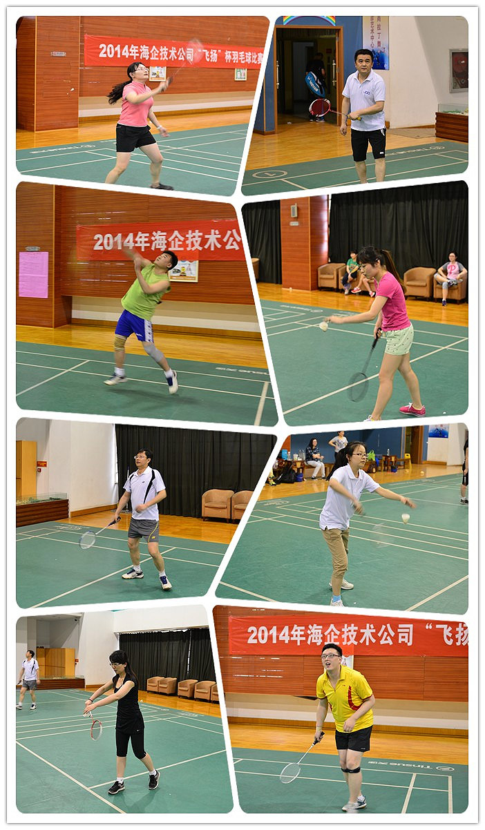 ????????5月16日下午13:30,2014年海企技術(shù)公司“飛揚(yáng)”杯羽毛球比賽在中山東路全民健身中心順利舉辦。比賽共分四個(gè)項(xiàng)目:男單、女單、單雙、女雙,每個(gè)項(xiàng)目分冠、亞、季共12個(gè)獎(jiǎng)項(xiàng)。公司員工積極參與,共有60人次報(bào)名參賽,總計(jì)進(jìn)行了一百多場(chǎng)比賽。從小組循環(huán)賽到淘汰賽到最后的總決賽,參賽者們各個(gè)勁頭十足、活力四射。我司以幾位部門經(jīng)理及副總為代表的種子選手,其高超的球技贏得滿堂喝彩,為整場(chǎng)比賽營(yíng)造了輕松、歡樂的氣氛。比賽期間所有選手克服了體力嚴(yán)重透支的不利狀況,與強(qiáng)手過招,一路過關(guān)斬將,充分發(fā)揚(yáng)了我司員工頑強(qiáng)拼搏、堅(jiān)持到底的精神風(fēng)貌。