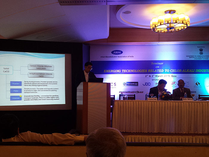 ????????2015年3月初,我司在印度GOA參加由印度堿業(yè)制造商協(xié)會(Alkali Manufacturer’s Association of India, AMAI)舉辦的關(guān)于燒堿行業(yè),設(shè)備,技術(shù)相關(guān)的展會,并在展會期間做了關(guān)于燒堿產(chǎn)品氯氣下游產(chǎn)業(yè)技術(shù)新趨勢的報告。