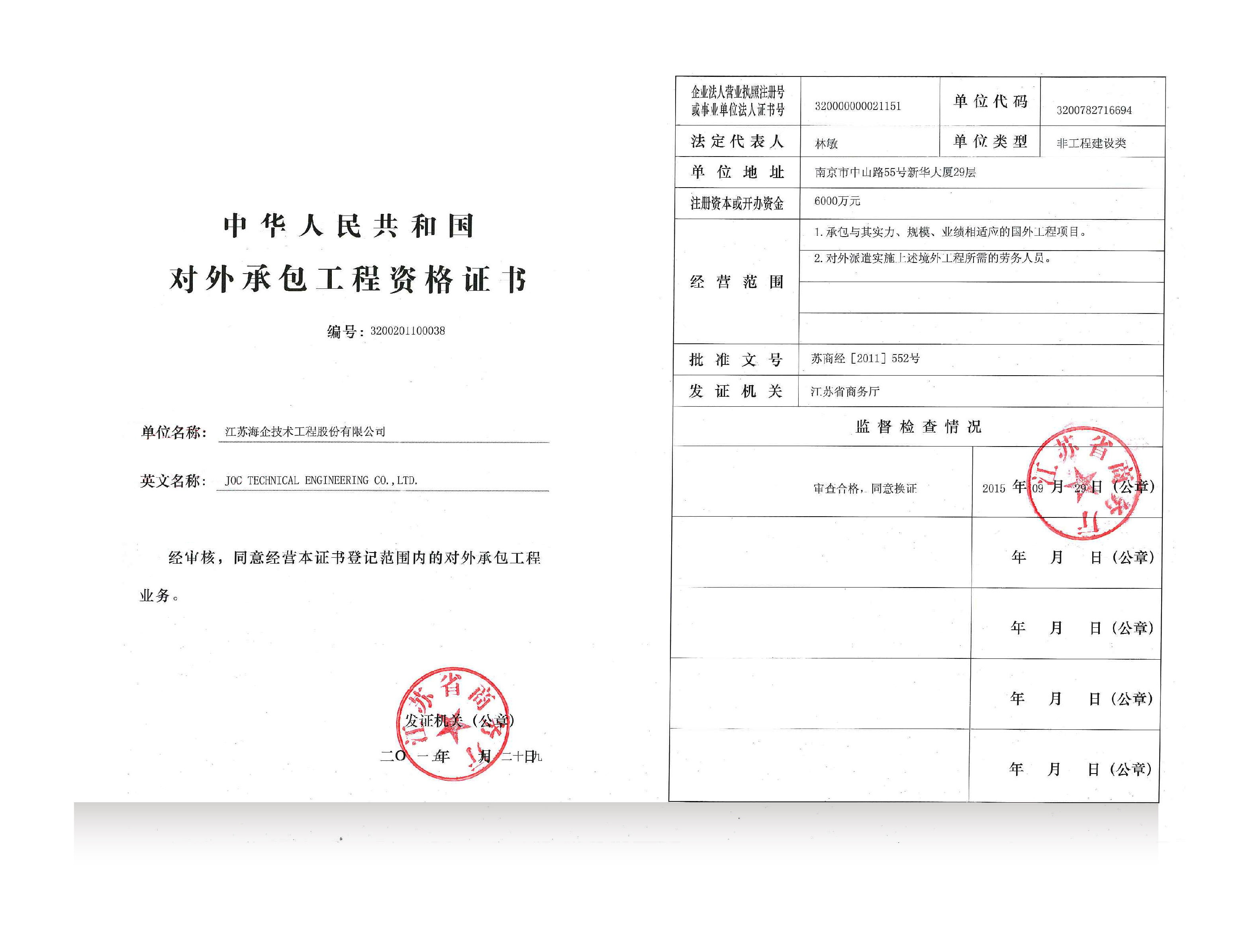 對外承包工程資格證書