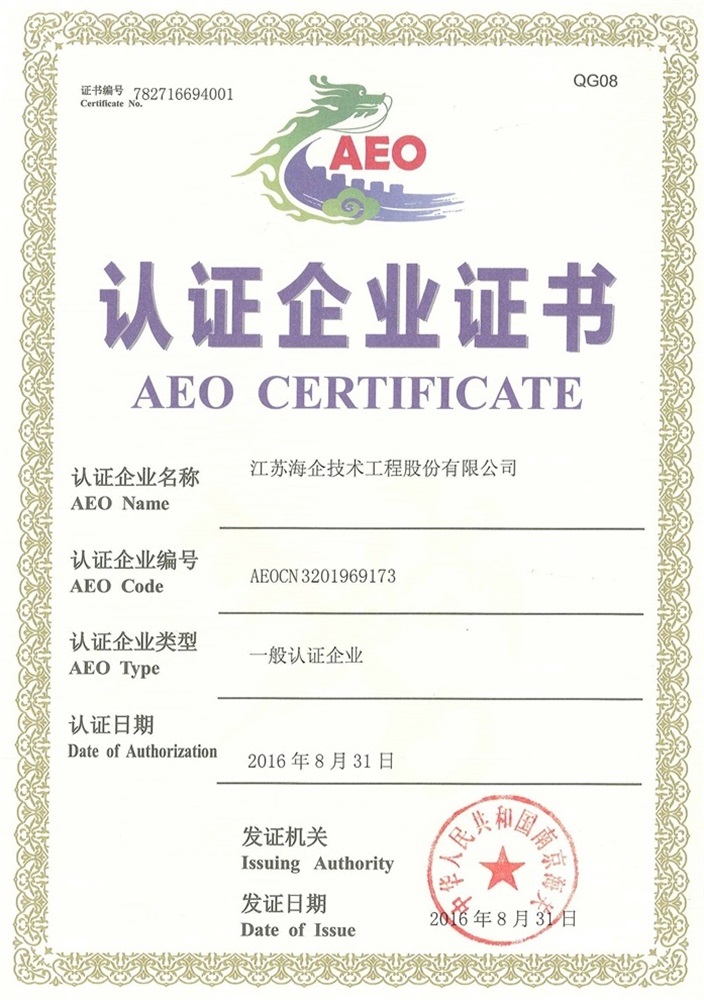 海關(guān)一般認證企業(yè)證書 (AEO)